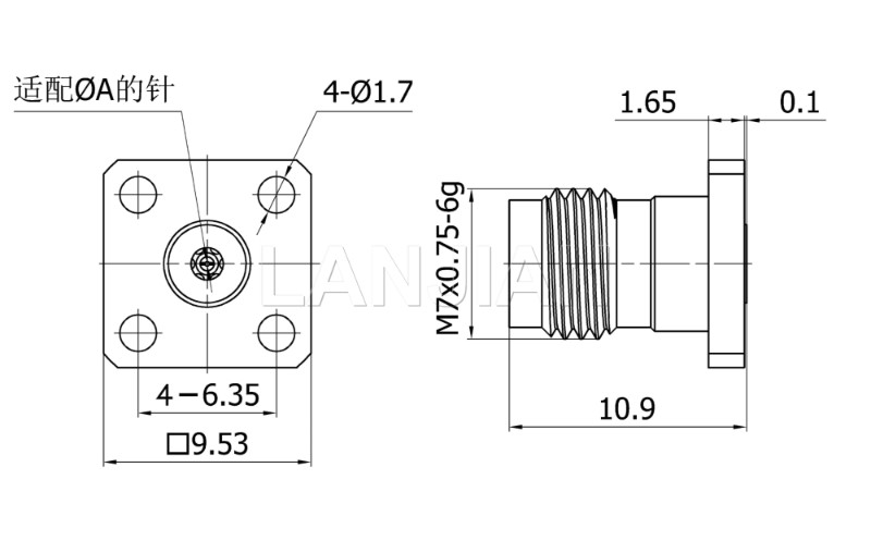 Description:2.4mm straight flange connector,50GHz
