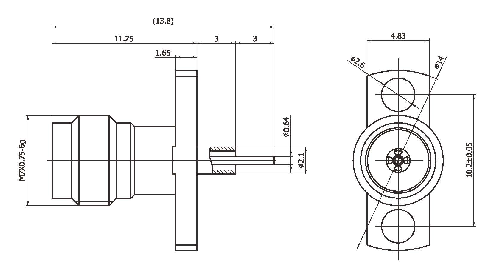 Description:1.85mm straight jack flange connector,90GHz